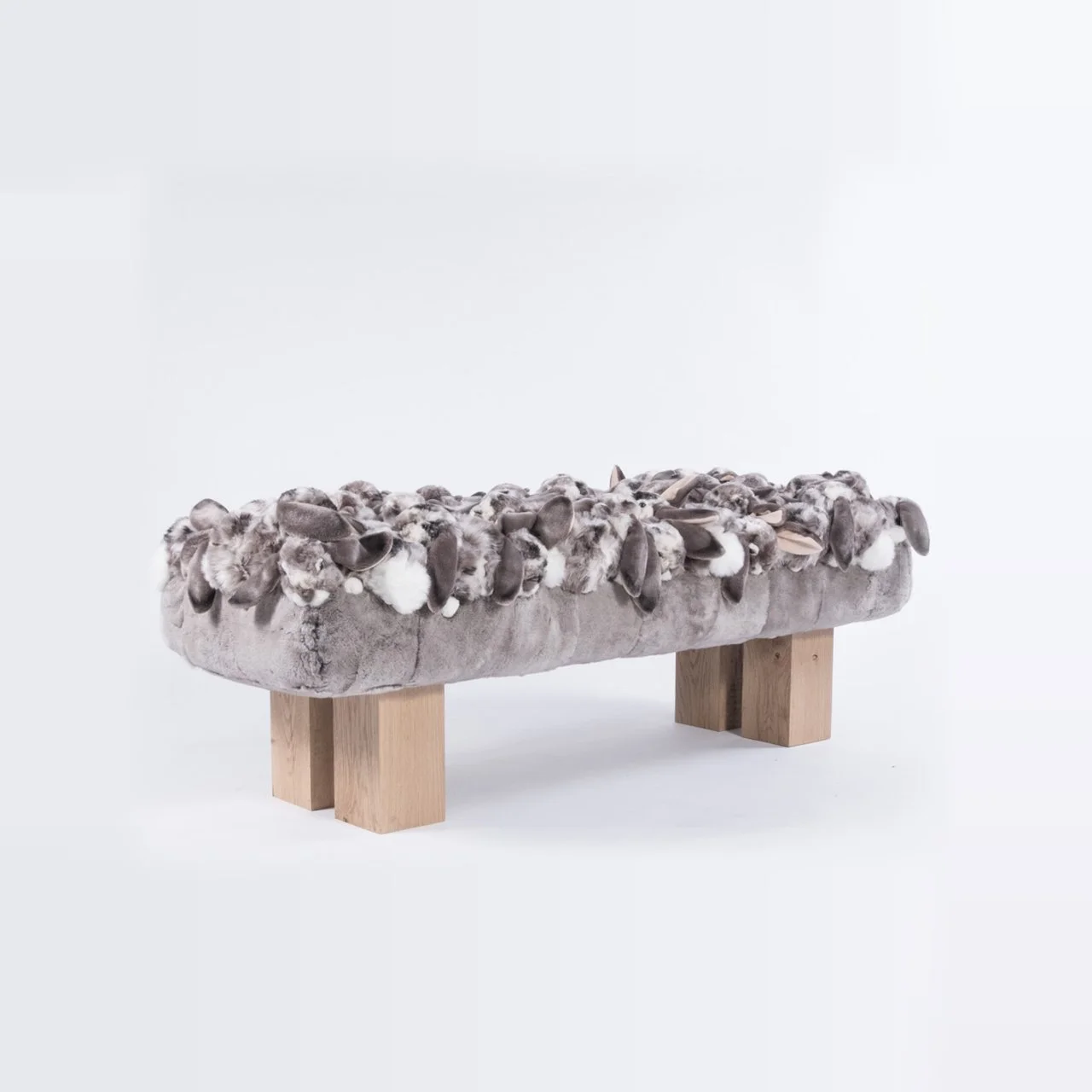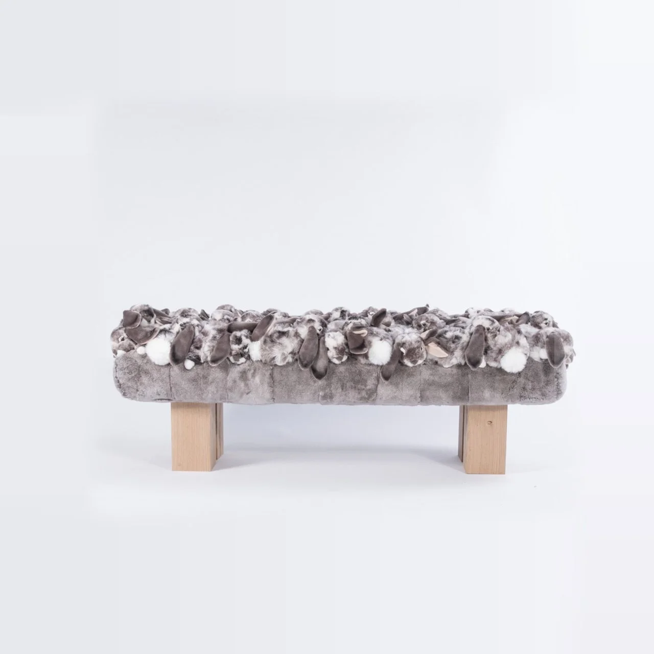REX bench Handmade in Belgium, AP bench, wood & metal,sheepskin, polyester fabrics, 160x60x50 cm, limited edition of 50 Slide 1 Slide 1 (current slide) Slide 2 Slide 2 (current slide) Slide 3 Slide 3 (current slide) REQUEST INFORMATION